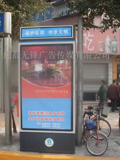 - 产品名称:垃圾广告桶 经销商:成都无锋广告传媒有限公司