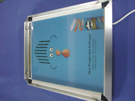 超薄灯箱说明: (1) 外形结构:45度角拼角,四边开启;灯箱厚度28mm,灯箱边框40mm; (2) 表面颜色:主要有珍珠白、闪亮银等颜色;量大可根据客户要求定颜色; (3) 灯管:T5灯管为国产灯管; (4) 镇流器:配套电子镇流器(符合CE、CCC、UL认证); (5……