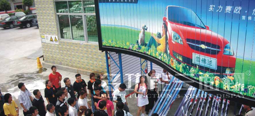 “翻得丽”三面翻广告牌由合金三棱柱组成,画面由不干胶电脑喷画形式贴在合金三棱柱上。通过宁静柔顺的电机及专利转动使广告牌展现三组不同的画面,相继出现的三幅画面有连贯性地充分发挥活动广告的效能。