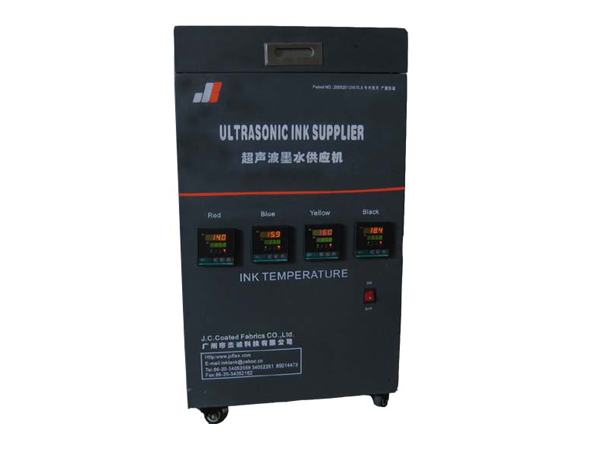 - 超声波墨水供应机由特制的墨水瓶和超声波装置、机柜、温度监测仪、墨水专用传感器、换能器等组成。开机后超声波进入到墨水中,自动对墨水进行超声波处理,利用超声波的强力空化、粉碎、搅拌等作用将墨水中悬浮的抱团颜料颗粒打散,使聚合成团的颜料充分分散后均匀地分布在墨水溶剂中,从而使墨水保持均匀,消除墨水的聚合、沉降、分层现象,并且使墨水更加细腻,达到保护喷头,消除断墨、色差、偏针等现象,提高喷画质量等神奇效果。另外,超声波还能将墨水中的气泡赶出去,消除气泡对画面的破坏作用。当温度较低时,可以按要求设定墨水温度,就能将墨水温度保持在设定的温度范围内(40°C以下可能自行设定)。墨水温度显示在机器面板上。该供墨装置的超声波工作模式和温度都可以根据用户的需要进行调节