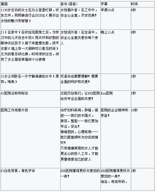 •女性是较为感性的,我们需要用真诚和关怀从女性的角度出发,关怀她们,用真切的话语打动她们,用色彩和音乐感染她们,同时医疗和美容又必须从科学和专业的角度来严谨对待。所以我们选择通过感性+理性的诉求相结合。整个文案既要张显人性从女性的角度获得好感,同时又要用科学,专业来提高她们对医院的认同感和信任感。