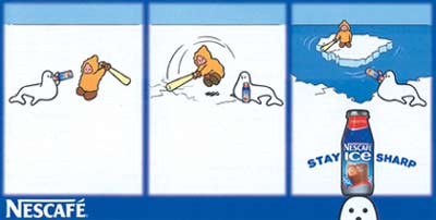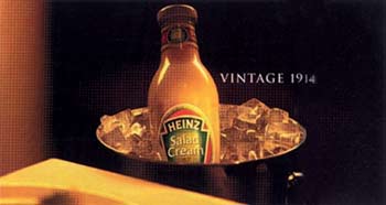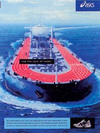 代理:德国·杜塞尔多夫Sixpack广告公司客户:Asics运动鞋文案:为了运动之爱。评注:即使在很不寻常的地方,人们也不能放弃自己最喜爱的运动。Asics运动鞋为了证明这一点,让Sixpack广告公司铺置了世界上第一条适合于远洋的田径运动跑道。不过,为什么没有在海面上也直接铺上一些训练跑道呢? 代理:德国 Heye & Partner广告公司客户:麦当劳制作:汉堡Cobblestone影视制作公司评注:著名喜剧演员史蒂芬·拉普继续在麦当劳的电视广告片中胡作非为。在最新的一部电视广告片中,拉普打算为自己做一个鱼肉汉堡,于是走进一家水族馆,一头扎进了装满水的大鱼缸里。水族馆里的监督员同情地看着拉普。当看到麦当劳鱼肉汉堡的促销广告之后,拉普高兴极了,水像喷泉一样从口里喷出来。 代理:英国 李奥·贝纳广告公司客户:亨氏沙拉酱评注:这是亨氏公司继去年推出的“添加亨氏沙拉酱,味道好极了”之后,又一新的广告战役,广告语是“1914年出品”。其中一则影视广告表现,一对年轻夫妇在餐馆点了红酒,但当侍者端来酒后,他们选择了亨氏沙拉酱。亨氏的品牌经理介绍说,亨氏沙拉酱表现得十分有趣,风格特异,以诉求新的一代人。 代理:英国 麦肯广告公司 客户:雀巢Zce冰淇淋评注:雀巢Zce冰淇淋以童趣推出针对儿童与青少年市场的广告战役