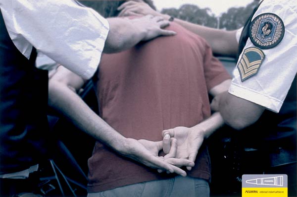 点评:不需要用手铐就可以让犯人就范,胶水之强度可见一斑。产品卖点表现得淋漓尽致。