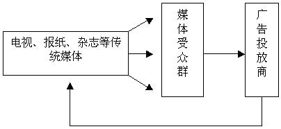 同样作为大众媒体,户外媒体有许多不同于电视、报纸、杂志等其他传统媒体的地方,尤其是在媒体、受众和广告投放商的三角关系上表现得比较明显。这些传统大众媒体通常是进行“二次贩卖”,首先第一次贩卖是要把自己的媒介产品直接销售给广大的受众,在自身受众群不断增加和影响力扩大以后,再将这种媒介资源出售给广告投放商,进行第二次的贩卖,以获得大大超越第一次贩卖利益的广告费;而由于户外媒体是瞬间表达、三秒钟的视觉阅读、注意力的被迫投入,具有传播的区域强制性和接受免费性,这样的特性决定其不需要进行二次贩卖,可以直接的一次性销售给广告投放商,然后发布给广大受众,大众的眼球成为户外媒体的筹码直接换取可观的广告费用。(见图示一)