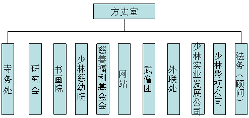 结合以上八个方面的品牌塑造,少林寺的组织结构也作了调整,调整后的架构更有利于现代化的品牌运作,为少林寺的品牌创新与传播打下了基础。