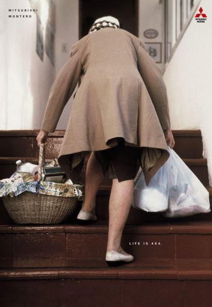 创意乱讲:还是这三菱Montero,这回是讲功能。Life is 4×4,老人、小孩、狗狗四肢并用,生命的活力就在这里,四轮驱动也是一样,活力无穷,能突破任何难关。