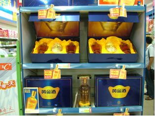 我们去了家乐福,经过若干场戏的推演完成了黄金酒的标志、包装、陈列、堆头的设计。