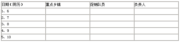 3)、排出重点乡镇的大集日期,安排促销队员时间排期: