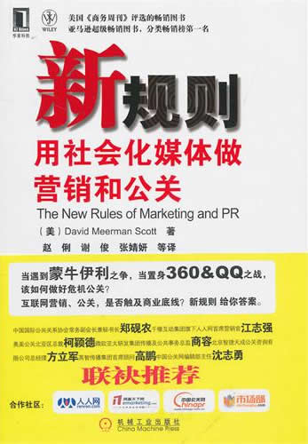 • 本书揭示了网络技术如何改变了营销和公关的规则,详细介绍了各种不同的在线媒体,包括博客、播客、在线论坛、社交网络等,并对如何在实际工作中应用这些营销、公关新规则给出了具体的指导。书中列举了50位网上成功营销和公关的案例典范,汇总了这些创新型营销者的见解、理念,教会读者如何利用社会媒体工具建立“思想领袖”地位,从而成功营销、公关。