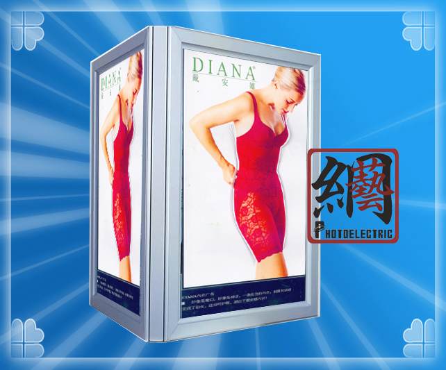 双面超薄灯箱: 1、双面导光板超薄灯箱,厚度仅为41mm 2、银灰色铝质外框,淡雅美观,并可根据客户需求更换外框颜色; 3、光线柔和、均匀,画面真实自然; 4、图片更换方便,可以随时更换画面; 5、节能,比同面积传统灯箱节电50%以上; 6、采用名牌T5灯管使用寿命长……