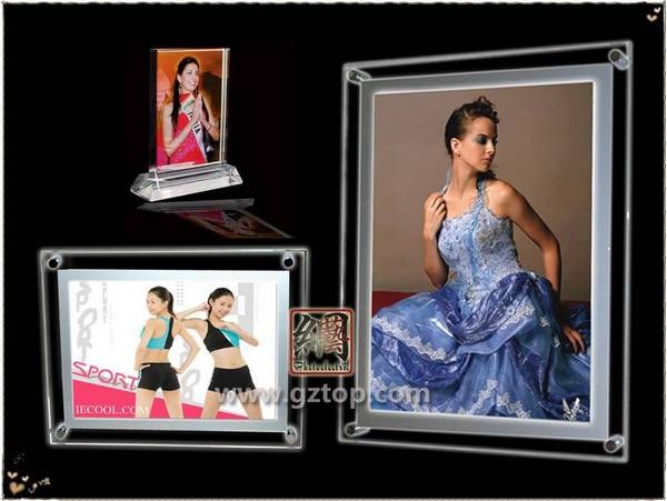 水晶灯箱: 侧面导光设计,光线均匀; 易更换图片,安装方便; 透明水晶框,使用LED光源,更加节能,更长寿命; 有桌上,壁挂多种放置方式; 适用于:酒店洒吧、快餐厅、连锁经营店、婚纱影楼、 室内装饰、公司招牌、礼品展示、橱窗展示、展品展示会等各种场所……