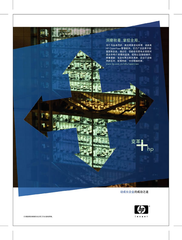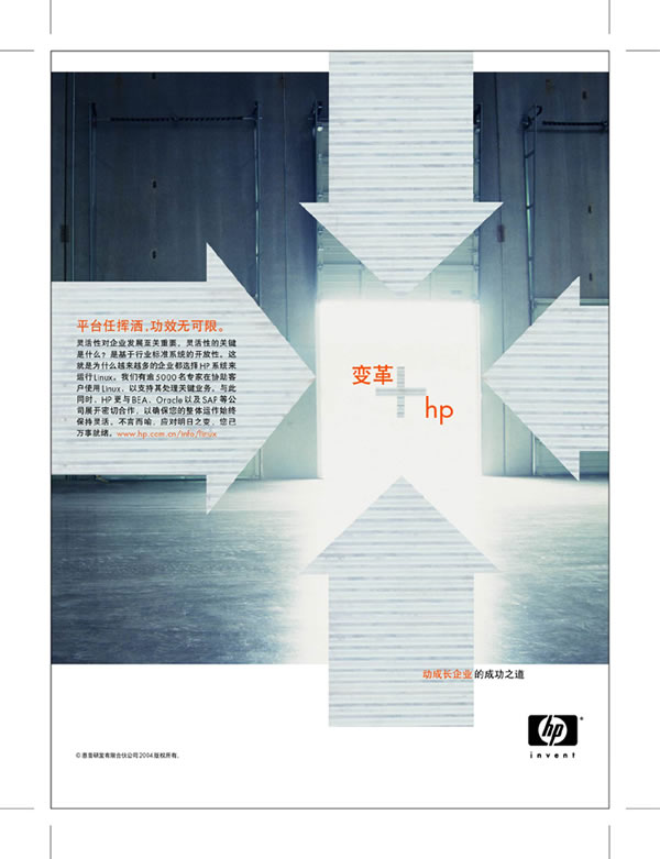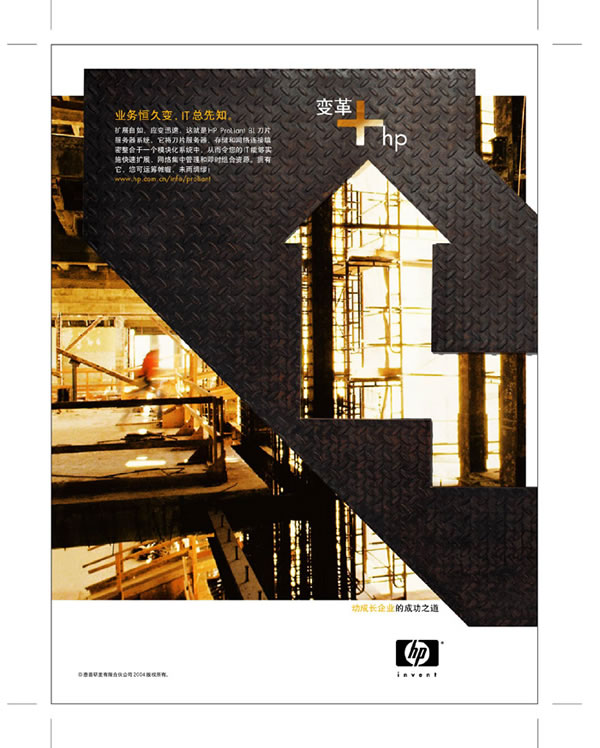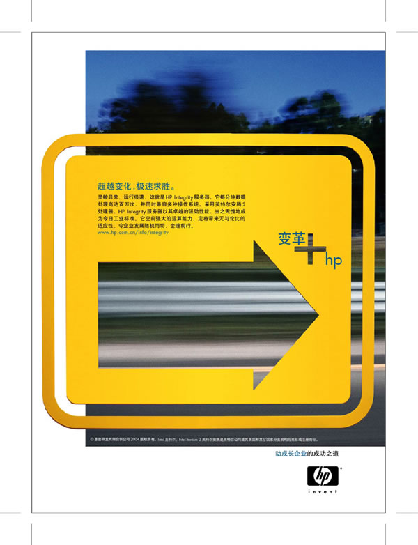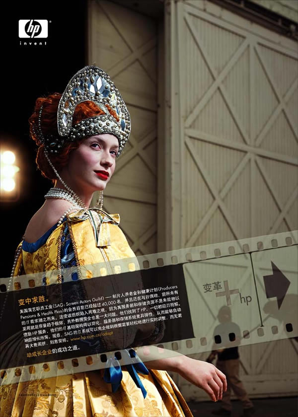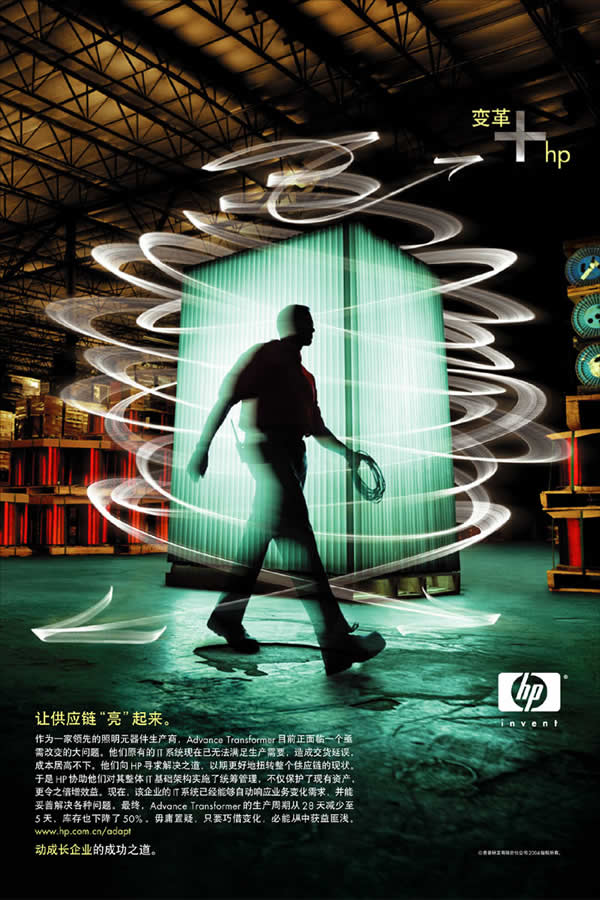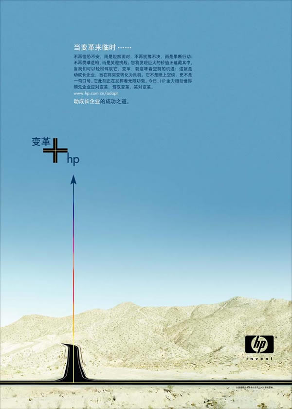 当前位置:中国广告人网站>创意策划>平面饕餮>详细内容 HP系列精彩平面广告欣赏--变革+HP 作者:佚名 时间:2005-10-9 字体:[大] [中] [小]