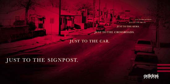 一点也不。爱迪达证明的一件很有趣的事,就是全球化广告能够作到什么:爱迪达的广告显示出在大多数的状况下都能够做出高质量而全球通行的广告。全球化的广告不用迁就最大多数人,意念的质量也不必因为要跟不同国家的人沟通而牺牲。有些客户会觉得讯息一定得简化才能跟全球各地同类的受众沟通。我不相信。从我的观点,爱迪达实际上帮着教育了我们这一点。我还认为,意念更好,也就越有可能在这一点上成功,在澳洲、北欧、远东和任何地方成功。爱迪达证明了这一点,Nike证明了这一点。偶而意念也必须为某地区或国家量身订做,但这不是什么问题。也没有对错可言。