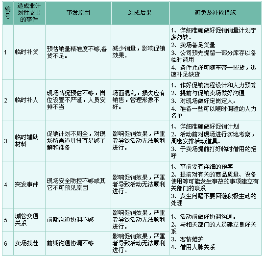 1、做好促销的预案。包括活动内容、费用投入、谈判步骤、紧急事故处理方案。那么,在促销谈判的过程中可以根据进度和发生的状况随时调整方向,采取后备处理方法,应对各种情况。因为谁也不能预料在谈判中会发生什么,可能是卖场的变数可能是竞争对手的变数可能是人员的变数等等,要尽量把这些变数影响减少到最低,将可能的损失降到最低。保证节假日促销的效果,必须做好完整的预案。