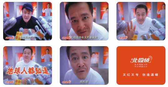 再然后,巧妙延续了北极绒以前的广告语:“怕冷就穿北极绒,地球人都知道,”重新唤起消费者的记忆;