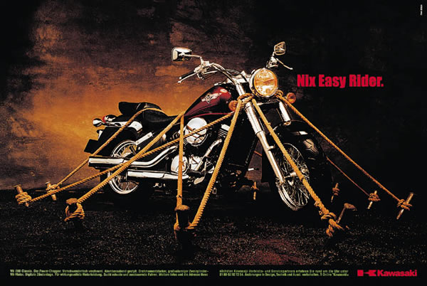 当前位置:中国广告人网站>创意策划>平面饕餮>详细内容 Kawasaki平面创意二 作者:佚名 时间:2005-6-14 字体:[大] [中] [小]