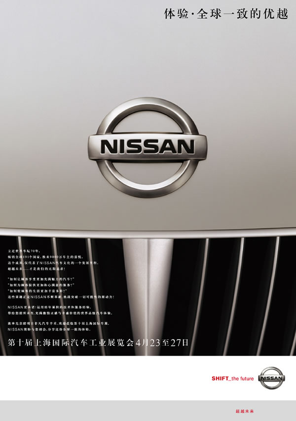 当前位置:中国广告人网站>创意策划>平面饕餮>详细内容 nissan创意平面 作者:佚名 时间:2005-6-26 字体:[大] [中] [小]