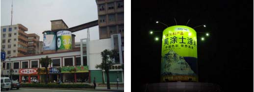 案例六:桶形广告:桶形广告在满街的平面广告堆里,有点鹤立鸡群的味道。