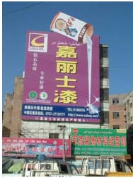 一般的路牌和立柱广告,大多以平面方式表现。随着广告牌的触目皆是,受众已视而不见,广告效果急剧下滑。笔者在一家涂料企业服务时,推广异形广告,获得惊奇的好效果。