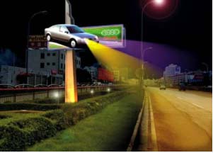 案例九:以假乱真,从广告牌中的车中射出一盏灯,让人过目难忘。