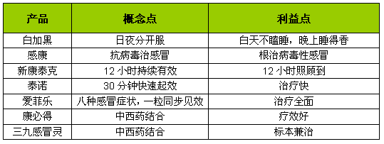 第一,借力:在“中西药结合”的消费者认知大趋势下,我们必须跟这个风,因为我们本身也是中西药结合感冒药;