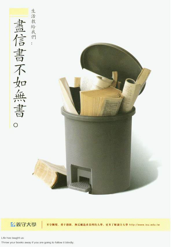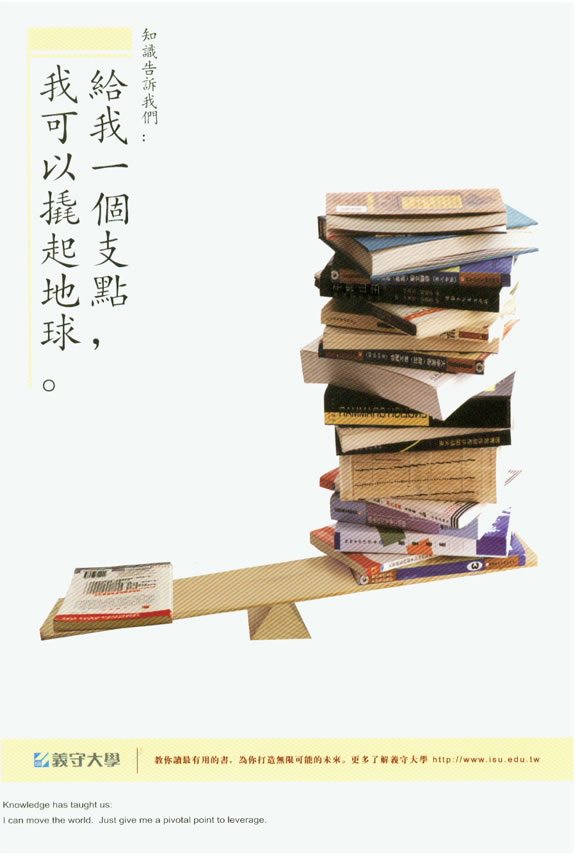 当前位置:中国广告人网站>创意策划>平面饕餮>详细内容 义守大学平面广告 作者:佚名 时间:2006-12-21 字体:[大] [中] [小]