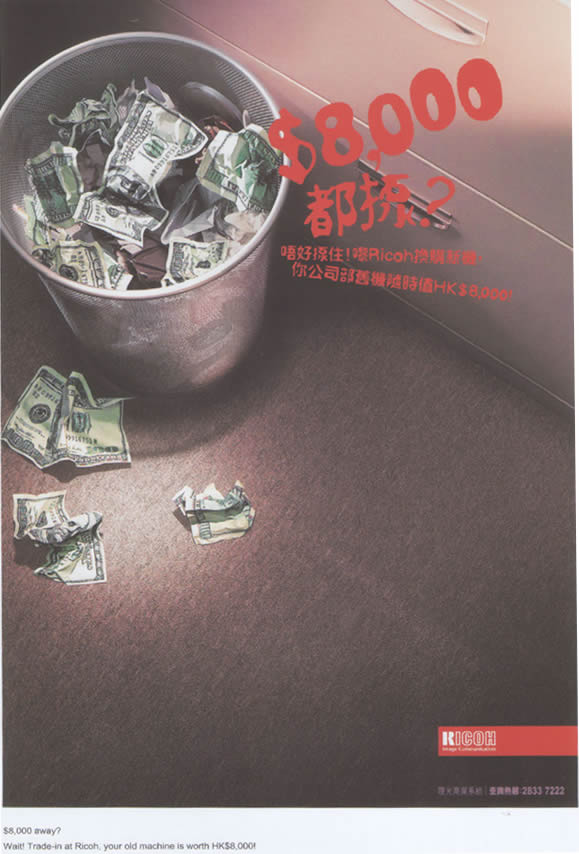 当前位置:中国广告人网站>创意策划>平面饕餮>详细内容 理光香港平面广告 作者:佚名 时间:2006-12-28 字体:[大] [中] [小]
