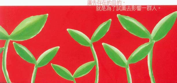 广告存在的目的,就是为了试图去影响一群人。一个叫好的广告可能引来掌声,在比赛中得奖,然后仅止于此。虽然人们为它喝彩,但是并没有为它而行动。一个高竿的广告,是能让人们在看过之后,改变思想或行为,并且采取具体的行动。