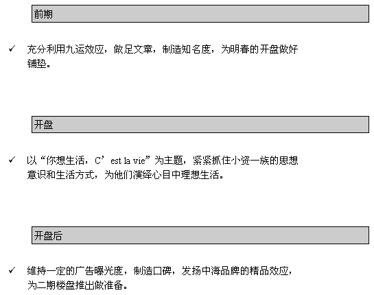 建立口碑,结合开盘后销售策略,吸引新的买家。