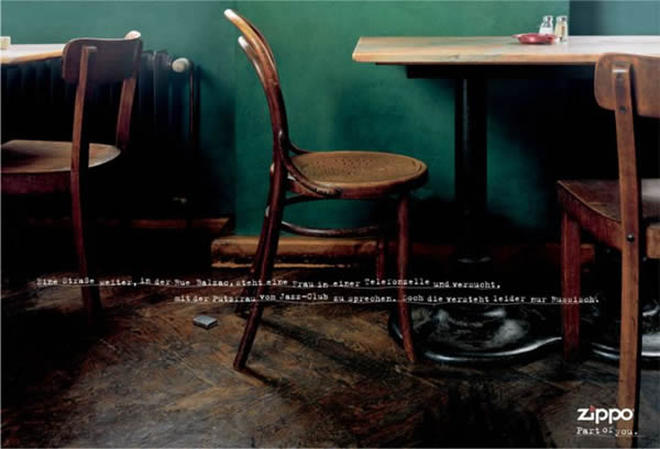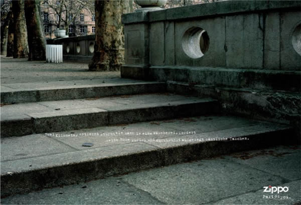 当前位置:中国广告人网站>创意策划>平面饕餮>详细内容 我的Zippo掉了平面广告 作者:佚名 时间:2006-3-28 字体:[大] [中] [小]