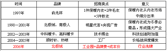 保暖内衣行业的发展史,亦可称为保暖内衣各品牌的招商史。从1997年至今,一共出现过五次颠覆行业招商格局,改变行业游戏规则的大转折。
