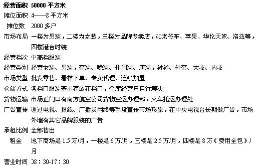 白马服装批发市场情况一览表: