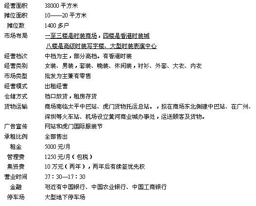 3.起点高,规划合理。市场一至三楼是时装商场,四楼是香港时装城,六楼是中国虎门国际服装交易会主会场,七楼是南方证券、黄河集团、黄河时装城办公室,八楼是高级时装写字楼、大型时装表演中心;