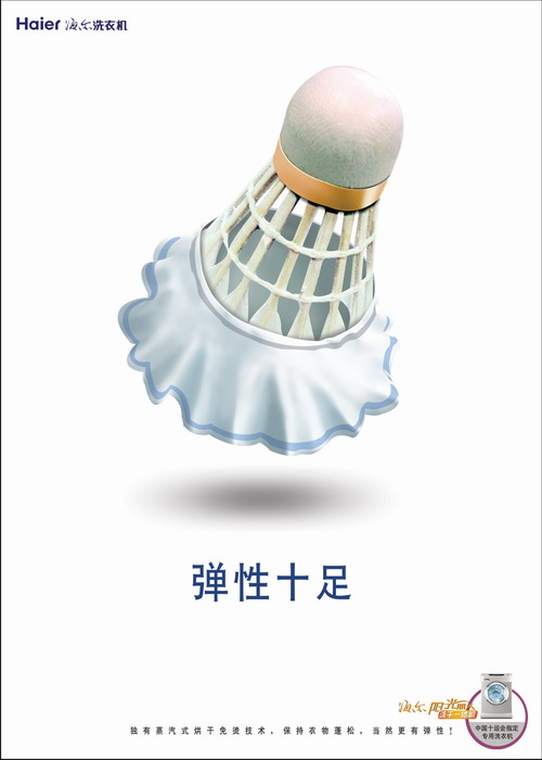当前位置:中国广告人网站>创意策划>平面饕餮>详细内容 海尔阳光丽人洗干一体滚筒洗衣机:弹性十足 作者:佚名 时间:2006-6-16 字体:[大] [中] [小]