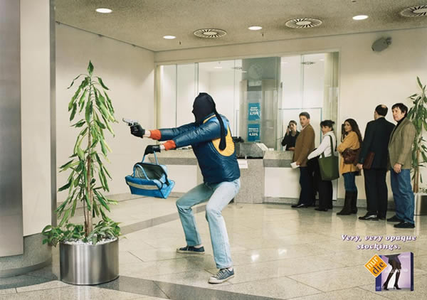 当前位置:中国广告人网站>创意策划>平面饕餮>详细内容 Nurdie丝袜广告:选错袜子的劫匪 作者:佚名 时间:2006-6-20 字体:[大] [中] [小]