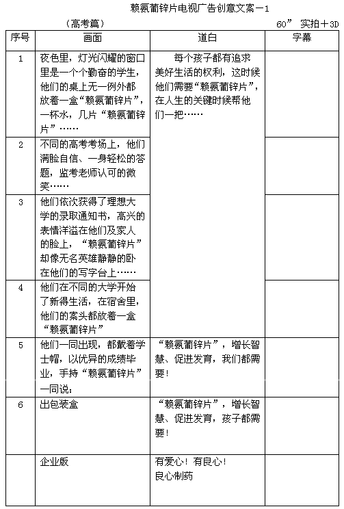 当前位置:中国广告人网站>创意策划>创意文案>详细内容 赖氨葡锌片电视广告创意文案 作者:陶俊杰 时间:2006-6-23 字体:[大] [中] [小]