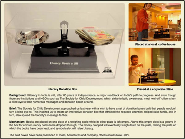 当前位置:中国广告人网站>创意策划>平面饕餮>详细内容 内放天平的捐款箱:“提高文化教育水平” 作者:佚名 时间:2006-6-30 字体:[大] [中] [小]