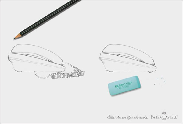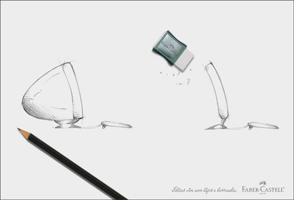 创意乱讲:辉柏嘉是世界上最早的书写工具公司,创于1761年,热衷设计的朋友往往对他们的产品情有独衷。创造了历史,又推动着历史,一切的设计最初都是从纸上开始。一支铅笔和一块橡皮,设计了这个花花世界。只是简单的两种工具,在一张白纸上为你讲述了一切。创意沉静,内敛,而极具感染力!真正拉风的创意,就是这样的。这件作品的迷人,不仅仅在于创意的简约有力,更在于其内在的强劲的思想。国内也有很多老店,老品牌,一旦做其广告来,无过是翻出一堆老古董来鼓吹自己的历史多么多么悠久。殊不知并非老的就是好的,老品牌要如何做出新活力?如何让人感受到你与时代休戚与共的关系?