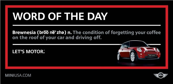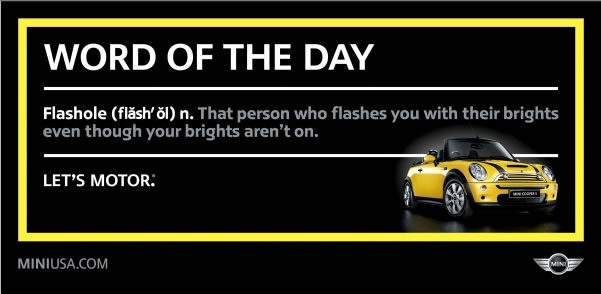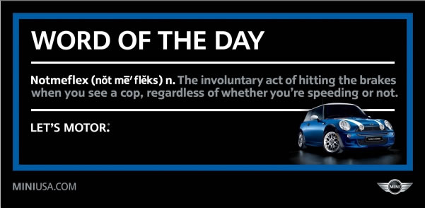 当前位置:中国广告人网站>创意策划>平面饕餮>详细内容 MINI COOPER:在美国 作者:佚名 时间:2007-1-10 字体:[大] [中] [小]