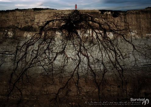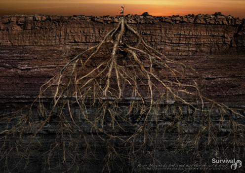 创意乱讲:06嘎那广告节的铜奖作品:保护土著民族。地面上站着的只是一个个孤零零的土著居民,而他们的脚下,是庞大古老的根系。土著居民的现状和保护的意义,在简单的对比中获得了完美的表达。画面极聚冲击力,引人深思。