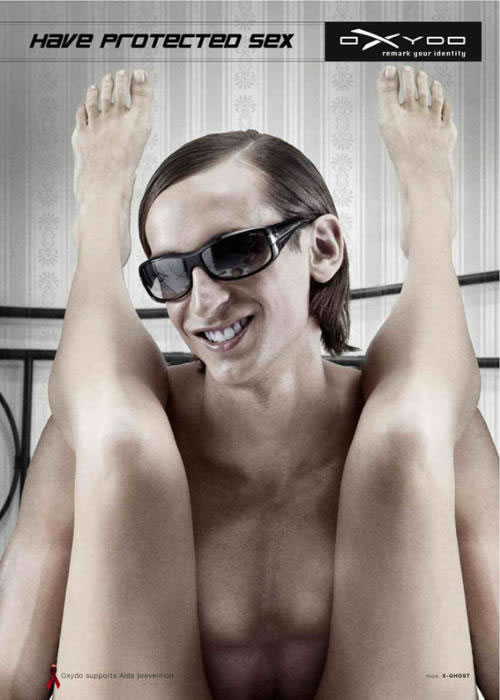 MK的时候显然墨镜是最没有必要的,作品左下角有一行小子,说这款墨镜支持防御艾滋的事业。多么讽刺!玩得就是这种嬉皮和荒诞,所谓人心叵测,戴这种墨镜或许会人你更容易获得艳遇,作品的潜台词其实在这里。