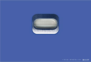 平面执行上,用“安眠药”作为表现元素具有独创性与影响力,视觉处理上大色块的蓝色背景衬托银白色调的药片,画面整体感很强,诉求内容清晰明了。 “令你快速入眠的超静音空调”的广告语对主画面作进一步的诠释,令消费者在会意一笑间接受了广告传达的信息。