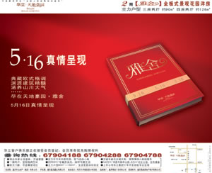 于是,他们邀请了业内资深的地产顾问公司和具备相当实力的广告代理公司参与项目的全程推广。由于决策层在项目产品打造上走的是高端路线,因此在形象定位上提出“翔于天地,颐于豪园”的宣传口号,以居高临下的姿态傲视重庆房地产市场,其前期广告的平面设计也得到业界人士的好评,从表面上看一派歌舞升平的景象。