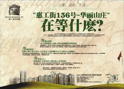 当前位置:中国广告人网站>创意策划>房产酒店>详细内容 惠工街136号华丽山庄中期宣传策略 作者:佚名 时间:2007-11-8 字体:[大] [中] [小]