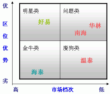 第一象限:好易家在现有泰州版块中目前占有绝对区位优势,同时好易家超市化经营业态,整体经营产品都是品牌性产品。跟周围商业氛围和消费能力较匹配。