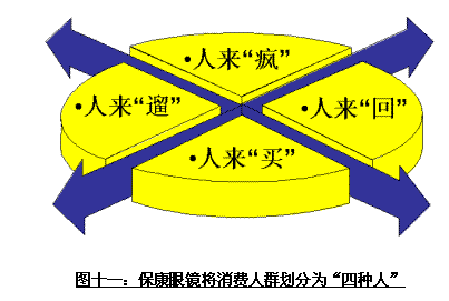 一个终端零售企业有时候存在似乎只有一个目的——找买主。而有时候我们又会发现一些终端零售企业最终把这个目的变成了一种现象——等买主。其实在中国很多传统眼镜店的生存状况就是这样,找一个人气极旺的口岸,保持着很高的利润率,一天只要能够卖出几款产品就能基本保持盈亏平衡。也正是在这种“守株待兔”的模式下,中国几乎发展至今都没有一家严格意义上的全国眼镜流通企业。对于这种现状进行冲击的平价眼镜超市的发展模式,虽然在一些地方获得暂时了喧嚣和热闹,但能否保持长久的发展动力对每个企业都是一个严峻的考验。保康自然也清醒地看到这种机会与压力,于是他在开业之初就将未来的消费人群划分为“四种人”,准备进行有计划的开发与管理。