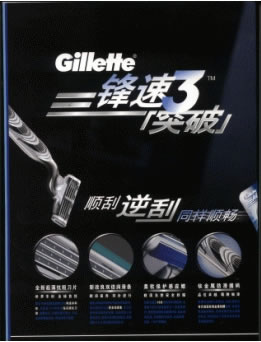 吉列进入中国市场十年有余,从吉列上海工厂的建立、超蓝刀片在中国的刚刚起步,到现今超蓝产品遍步中国绝大部分地区,能够覆盖无数乡村角落(在我们所调查的全国十省市场,近万个大小终端,几乎85%以上都有吉列超蓝系列产品销售),再到威锋和锋速系列的诞生,吉列已成为中国男士手动剃须之首选。