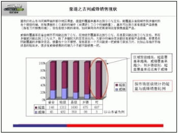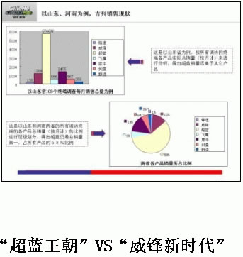 现实状况:锋速仍主销一级市场,威锋依旧局限在一、二级市场,而超蓝继续在三、四级市场“如鱼得水”。