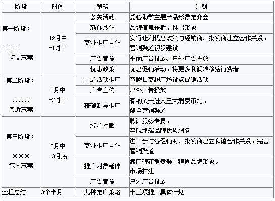 阶段性和集中性相结合的整合传播策略:根据商品销售的规律性,分前期、中期、后期进行×××形象推广,对每个不同的推广阶段采取不同的整合传播策略。