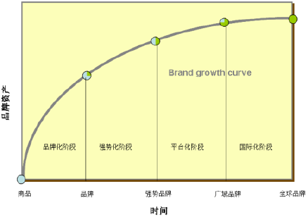 首先,品牌成长曲线(brand growth curve)反映了整个品牌生态环境的变化,随着经济的持续增长、政府鼓励集约模式、价值取向的消费文化、新技术对大规模运营的推动、市场的扩大和分化、竞争向深层次发展、组织与流程的改进、资本运营功能的加强、流通和传播效率的提高等一系列品牌生态环境因素的优化,品牌的地位越来越高,品牌资产的重要性越来越强,品牌优势的持续性越来越长。